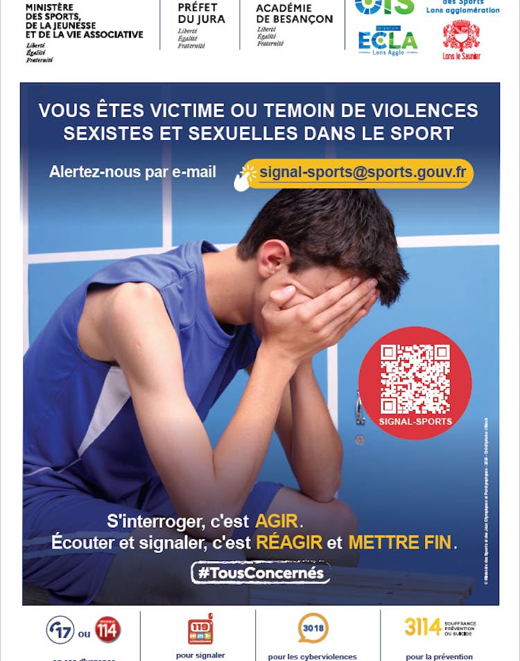 Vous êtes victime ou témoin de violences sexistes et sexuelles dans le sport, alertez à l'adresse suivante : signal-sports@sports.gouv.fr