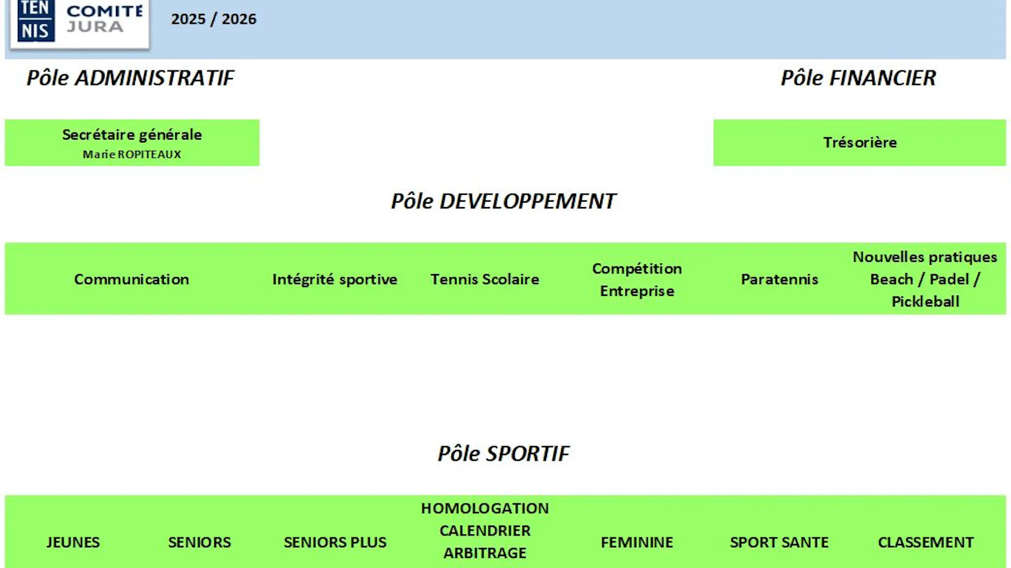Pour mener à bien ses missions, le Comité Départemental du Jura est administré par 4 pôles.